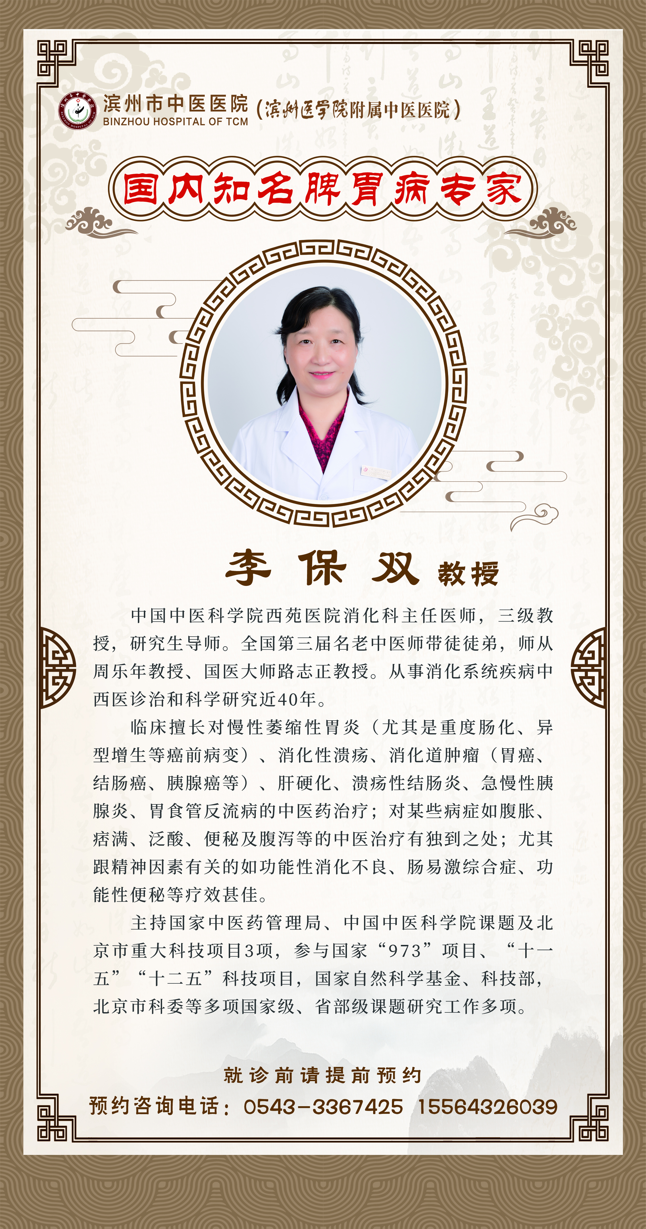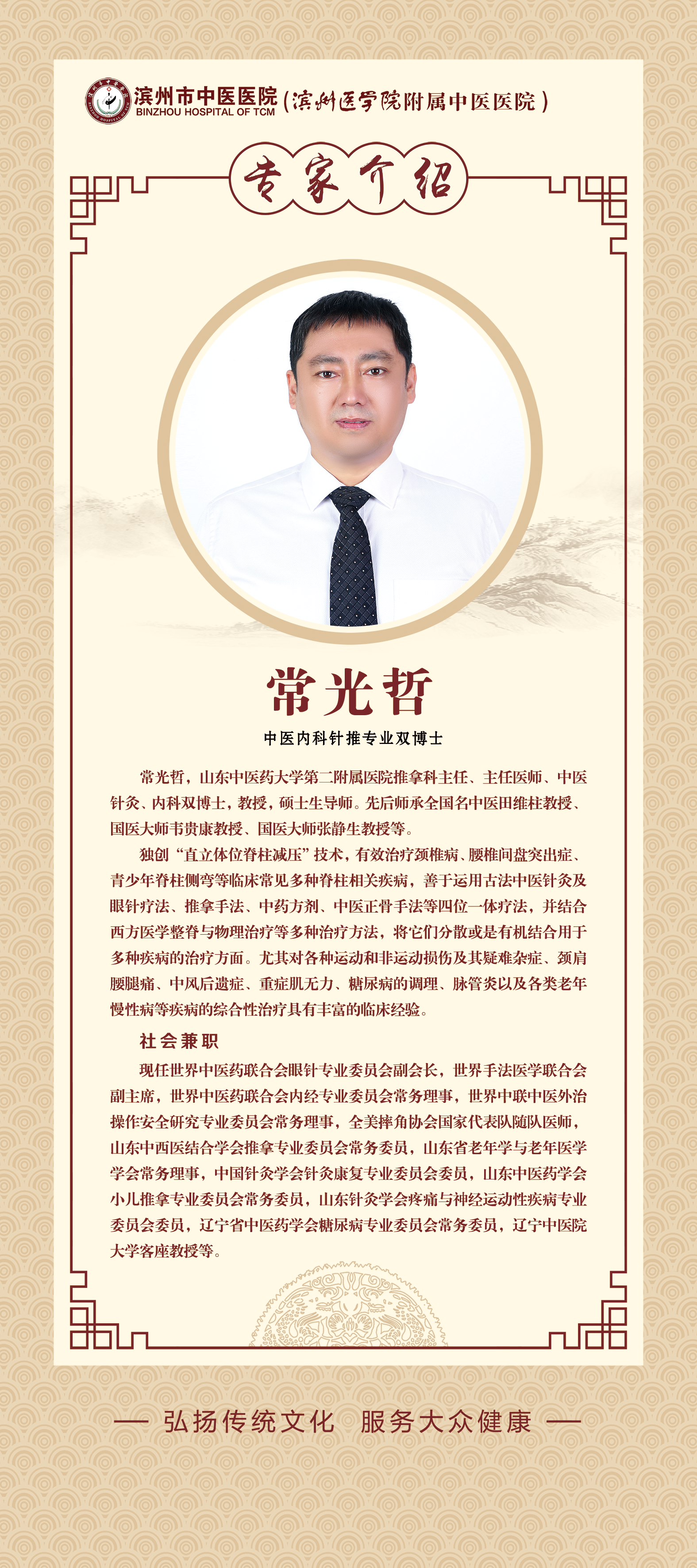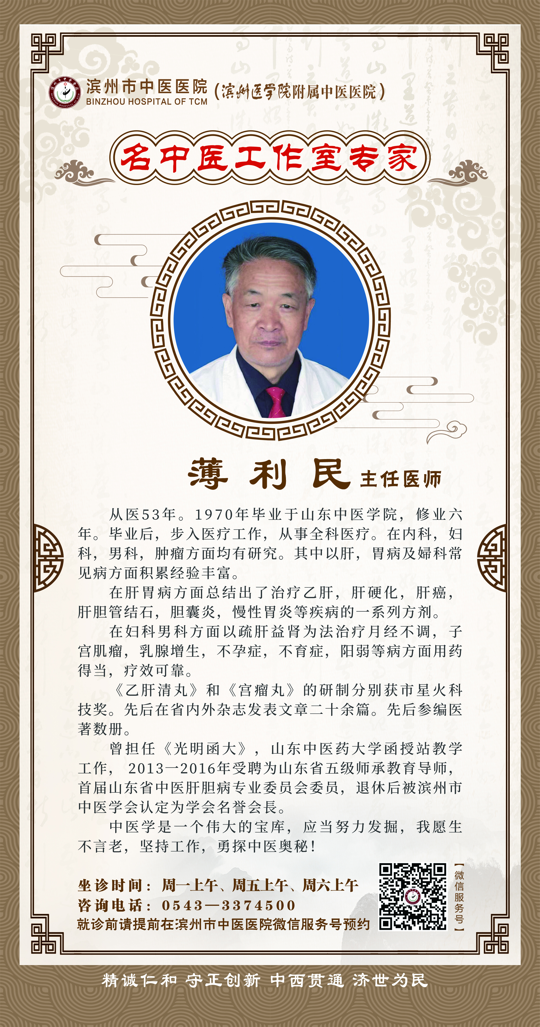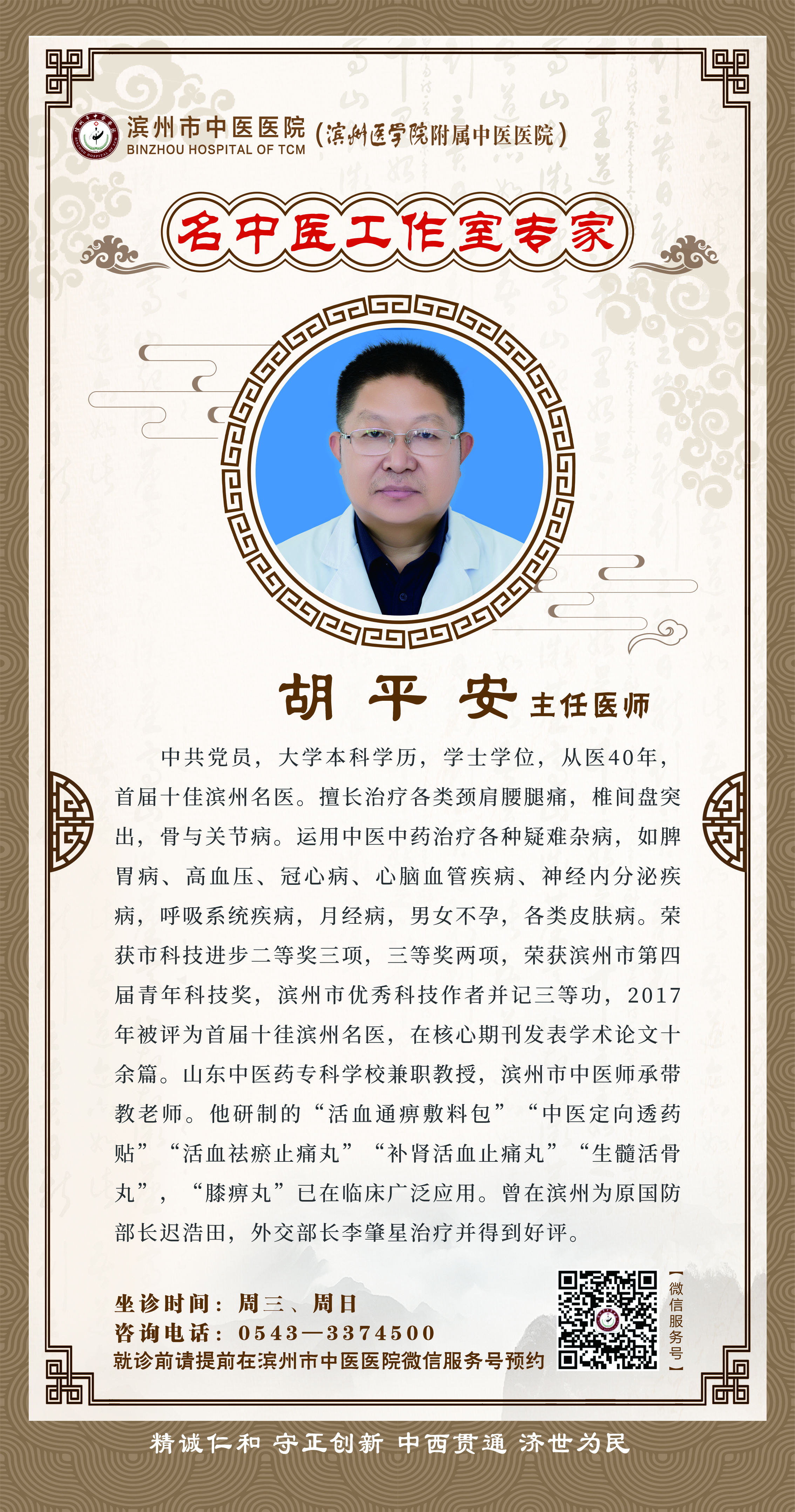 为进一步深化公立医院综合改革,创新我市中医药事业发展机制,充分发挥中医药传统文化特色优势,促进我市中医药事业持续健康快速发展,大力推进健康滨州建设,滨州市中医医院以传承创新为主线,以人才引擎释放医院发展活力,通过“引进来走出去”的人才培养渠道,进一步挖掘中医药文化内涵,促进我院医疗水平与学科、学术发展。2018年,医院启动实施国家级名中医传承工作室建设项目,建设全国名中医治疗中心滨州基地,打造全省“传承发展中医药事业”的滨州样板。这在滨州市中医医院乃至滨州市中医药发展史上具有里程碑的意义。