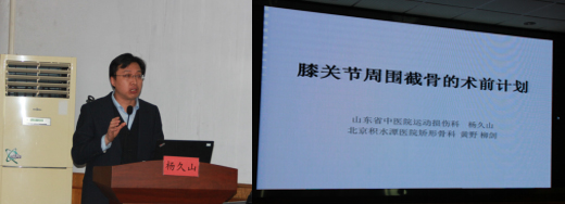 山东中医药大学附属医院运动损伤科杨久山主任做《膝关节周围截骨的术前计划》主题报告。
