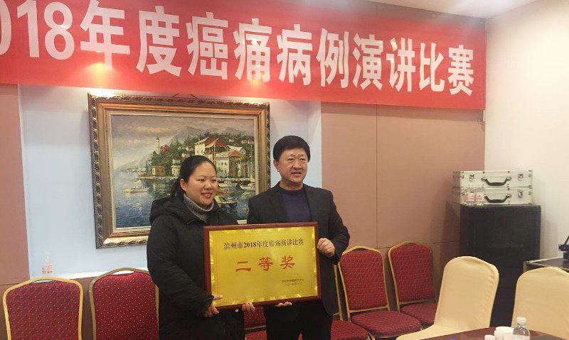 疼痛是人类的第五大生命体征,控制疼痛是患者的基本权益,也是医务人员的职责义务。为全面加强各级医院癌痛诊疗规范化的经验交流,进一步提高医务人员对癌痛规范化的治疗水平,充分展示我市中青年医务工作者在癌痛诊疗规范化管理方面的成绩,滨州市肿瘤质量控制中心于2019年1月11日举办“癌痛演讲比赛”,我院肿瘤科孙佩佩医师在此次比赛中脱颖而出,荣获演讲比赛二等奖。