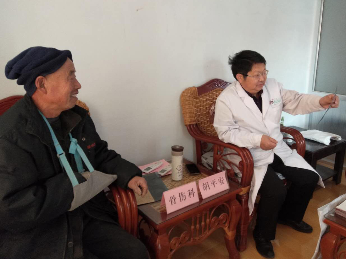 市中医医院骨伤科主任胡平安主任医师在为村民问诊