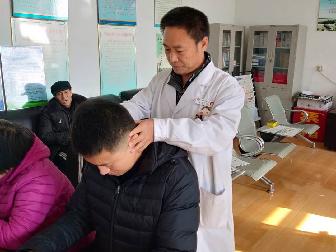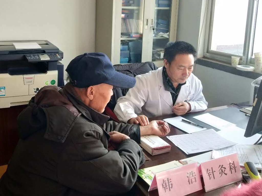 市中医医院针灸科韩浩副主任医师在为村民问诊