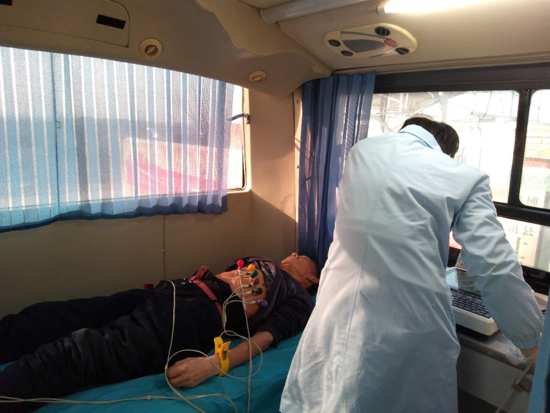 市中医医院体检人员为村民进行心电图检查