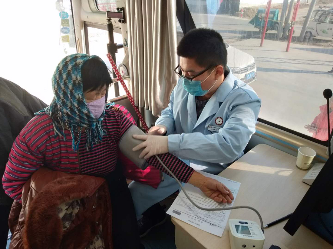 市中医医院体检人员为村民进行血压检查