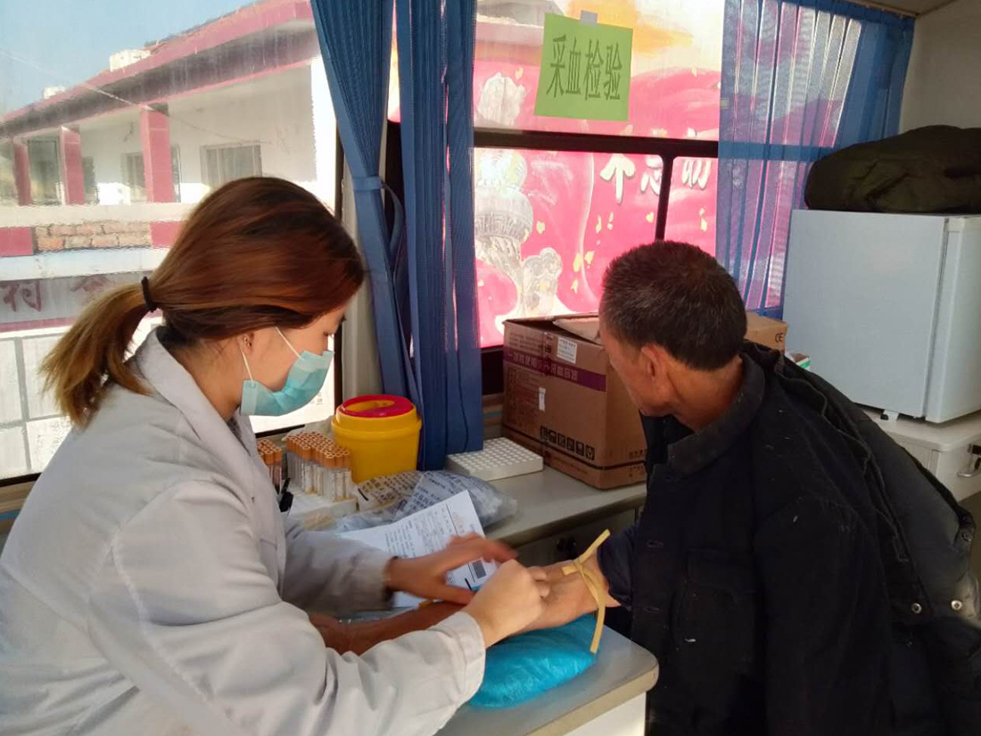 市中医医院体检人员为村民进行抽血检查