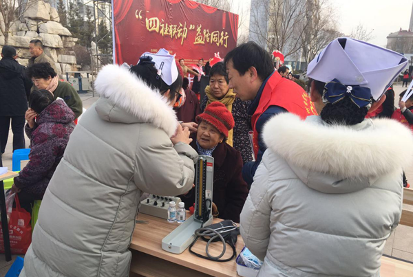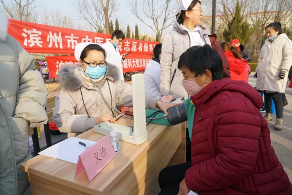 为更好地服务滨州群众,让群众过一个健康祥和的新年,2019年1月27日,我院团委联合医务科及各科室,组织志愿者走进“彩虹湖社区”参加“四社联动益路同行”公益组织迎春活动,为广大群众送去一份健康贺礼。