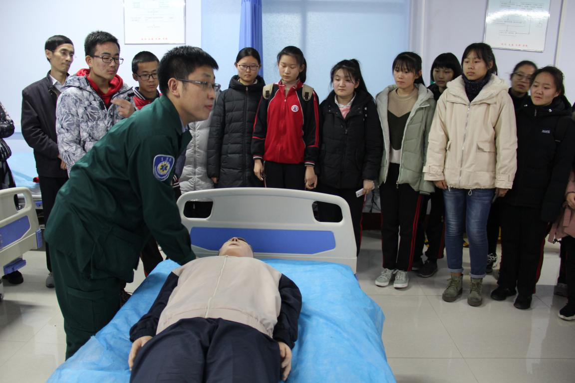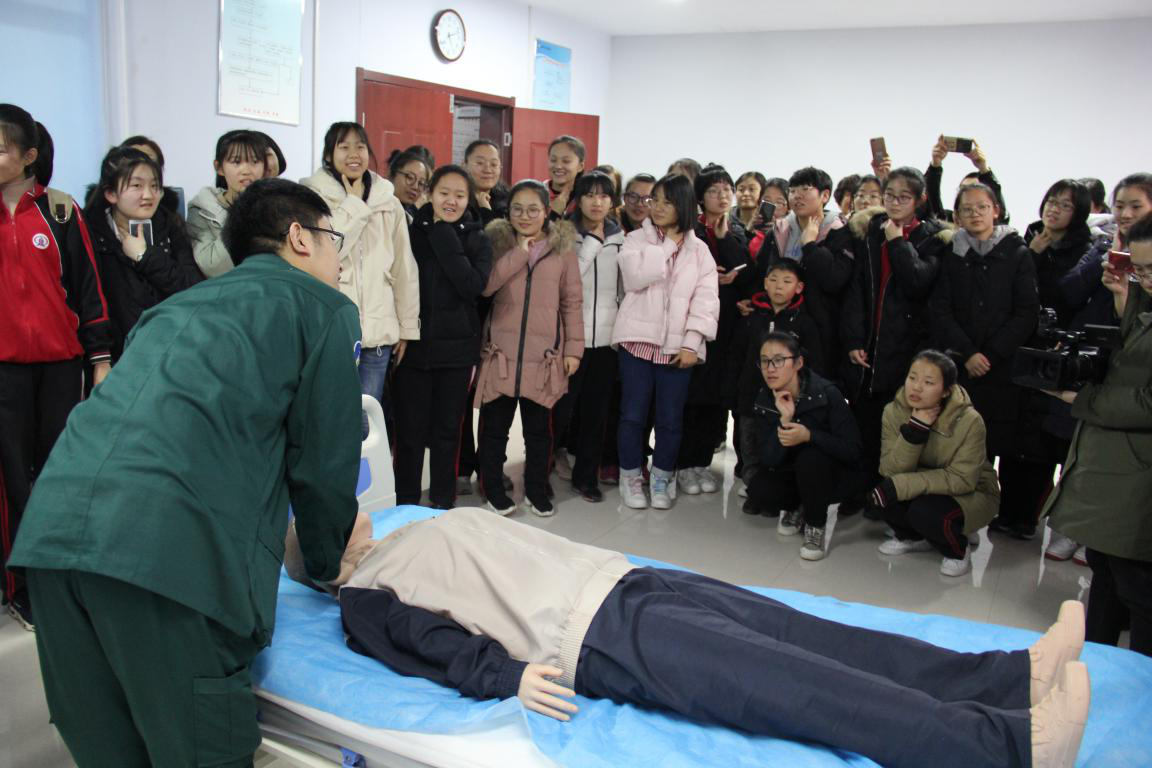 在急诊科,护士长向学生们普及了急诊急救的常见知识,教给学生们在紧急状态下进行心肺复苏的操作技能并现场演示。