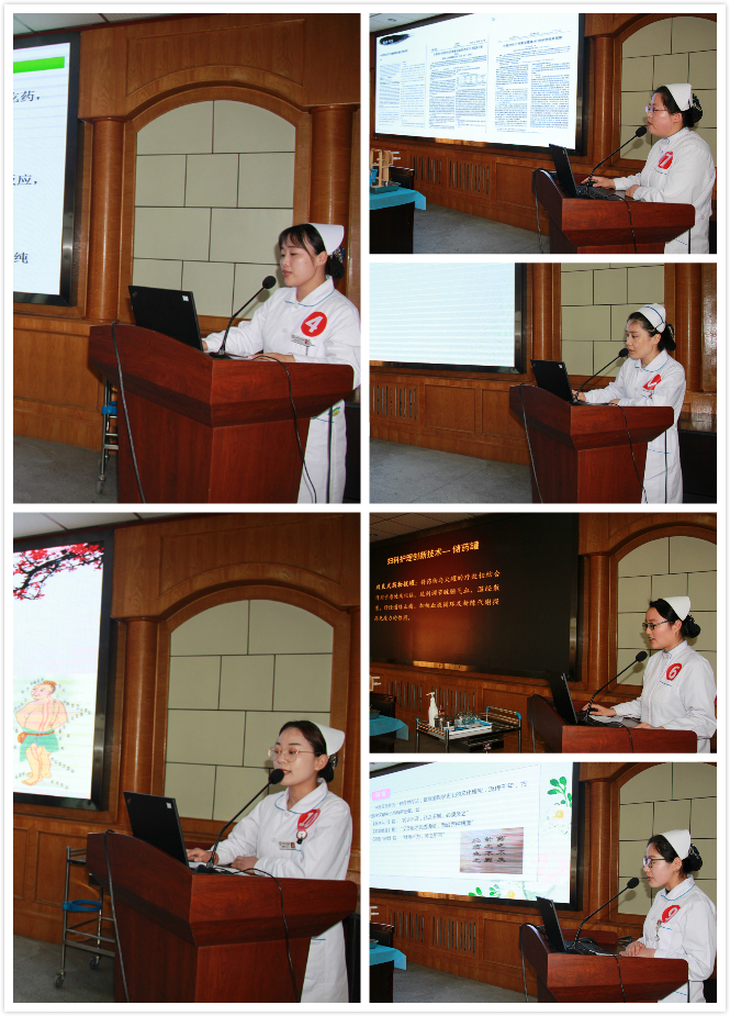 比赛在热烈的掌声中拉开帷幕,15名选手结合临床工作,以精美的PPT、生动的语言从用药知识、特色护理技术、中医保健操等方面进行了精彩演讲。用饱满的热情向大家传递了健康生活理念。