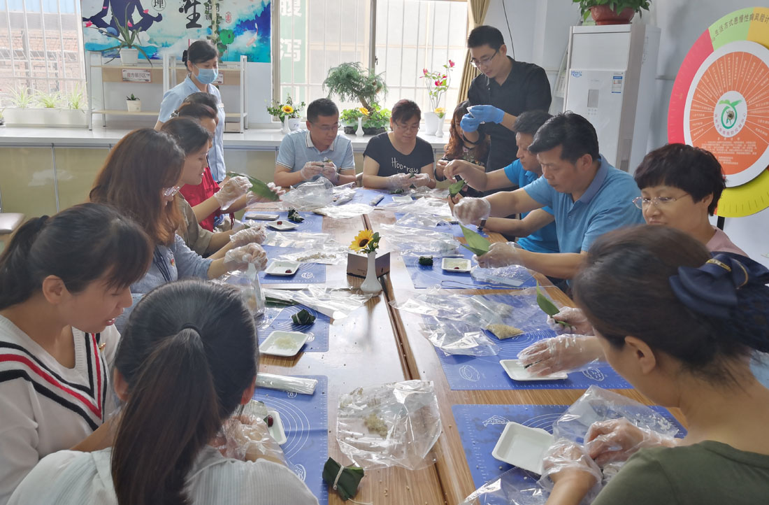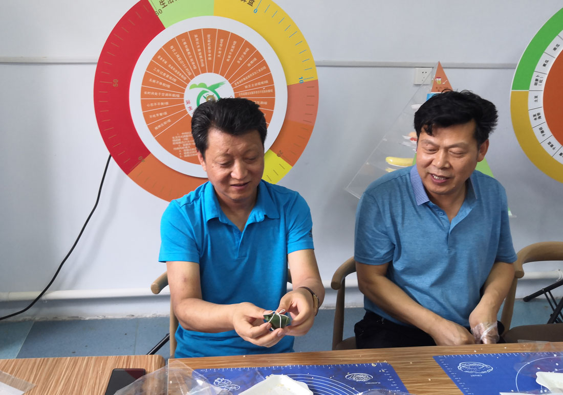 上午10时,我院党总支书记张永生,党总支副书记、院长高金昌带领医院工会、党办、护理部等科室负责人,组成亲情互动代表团,在健康管理(治未病)中心餐厅开展了“温馨互动,真情祝福”的活动。大家在特邀专业人士的指导下,学习了米粽的制作方法,每人亲手制作枣香米粽数枚。鲜绿的粽叶,把饱满的香米、红红的枣儿包裹,细线捆绑之后,上锅一煮,米粽就做成了。