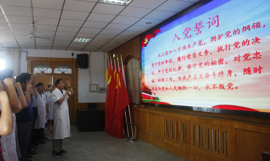 医疗党支部书记杨光升同志带领全体党员重温入党誓词。