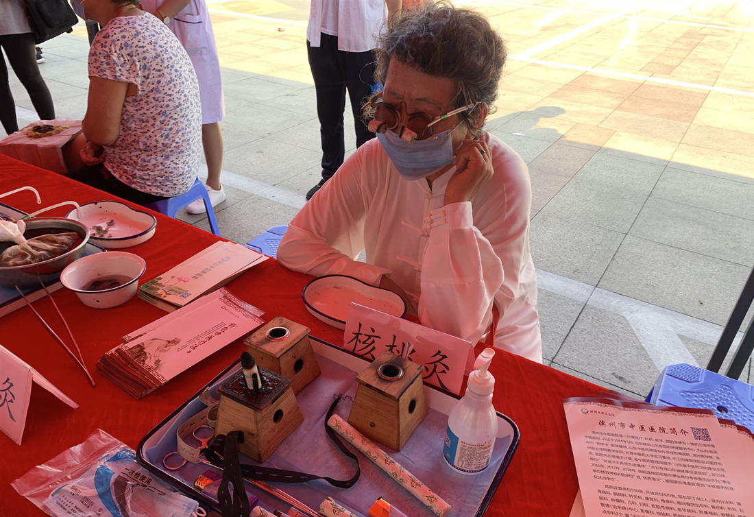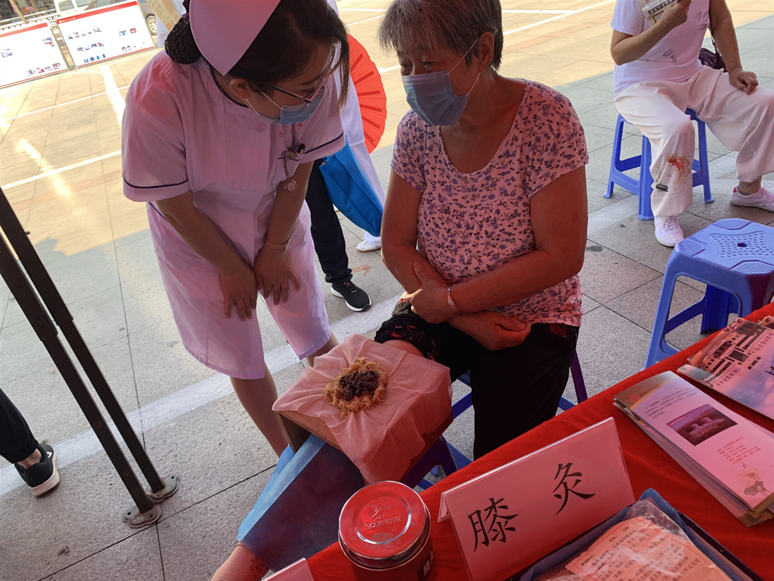 在中医护理项目体验区,滨州市中医医院护理团队推出了中医药特色诊疗器械展示(针灸、艾灸、火罐等),现场群众纷纷体验了耳穴压豆、杵针、药物罐、核桃灸、膝灸等特色护理项目,群众了解中医、体验中医项目的热情空前高涨,为中医药事业的发展营造了良好社会氛围。