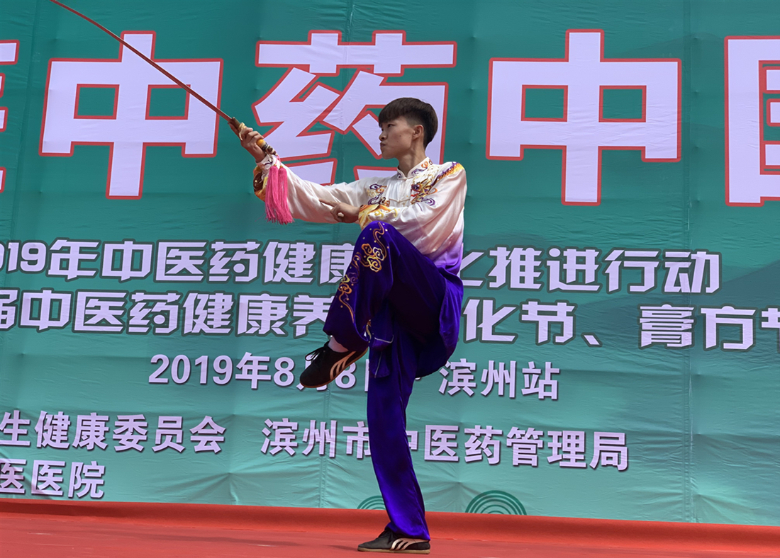 启动仪式现场,市太极拳协会进行了太极拳、八段锦,滨州市中医医院于泉浩进行了太极剑表演,表演如行云流水,如轻风拂柳,将中国传统文化的艺术魅力表现得淋漓尽致,博得了现场阵阵掌声。