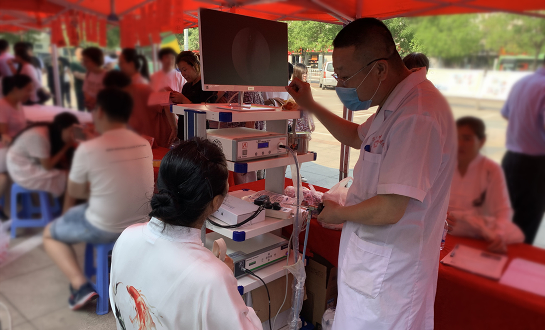 市卫生健康委领导一行参观慰问了义诊活动现场,并现场体检了部分检测项目。