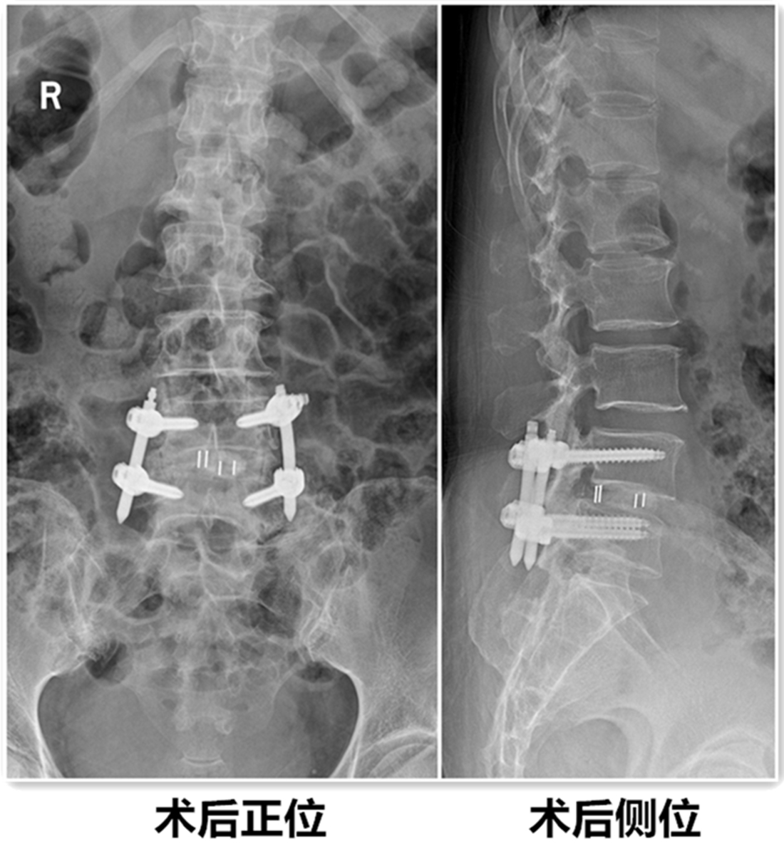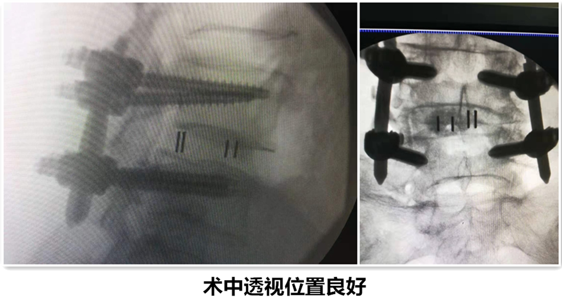 患者术后第3天带支具下床活动,症状基本消失,并行X线检查。见滑脱复位,且椎间隙高度恢复。