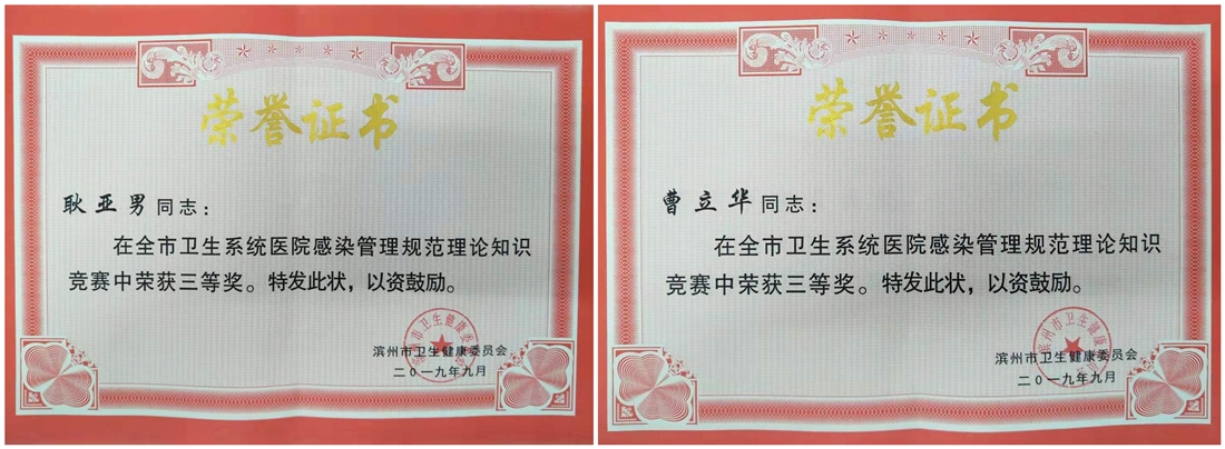 本着公平、公正的原则,经考试组织人员精密安排,从考试现场、阅卷到成绩录入、排名等环节全程封闭,有序进行。最终,付出赢得回报,我院喜获全市团体二等奖的好成绩,同时高启红荣获全市护理组个人二等奖,曹立华、耿亚男分获医疗组、院感兼职组个人三等奖。
