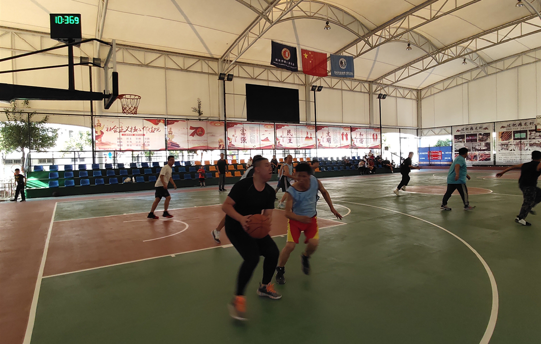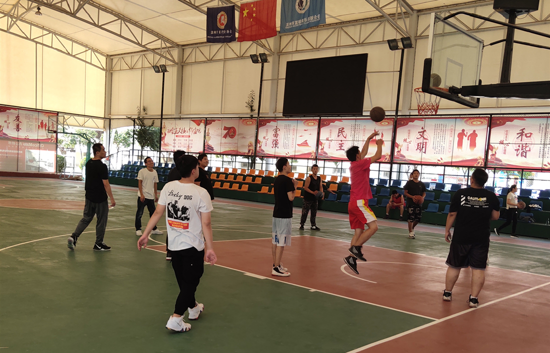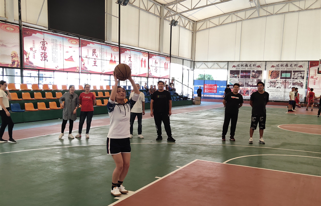 比赛项目分为篮球对抗、定点投篮两项。24名职工组成的两支球队参加了篮球对抗比赛,30名职工参加了定点投篮比赛。