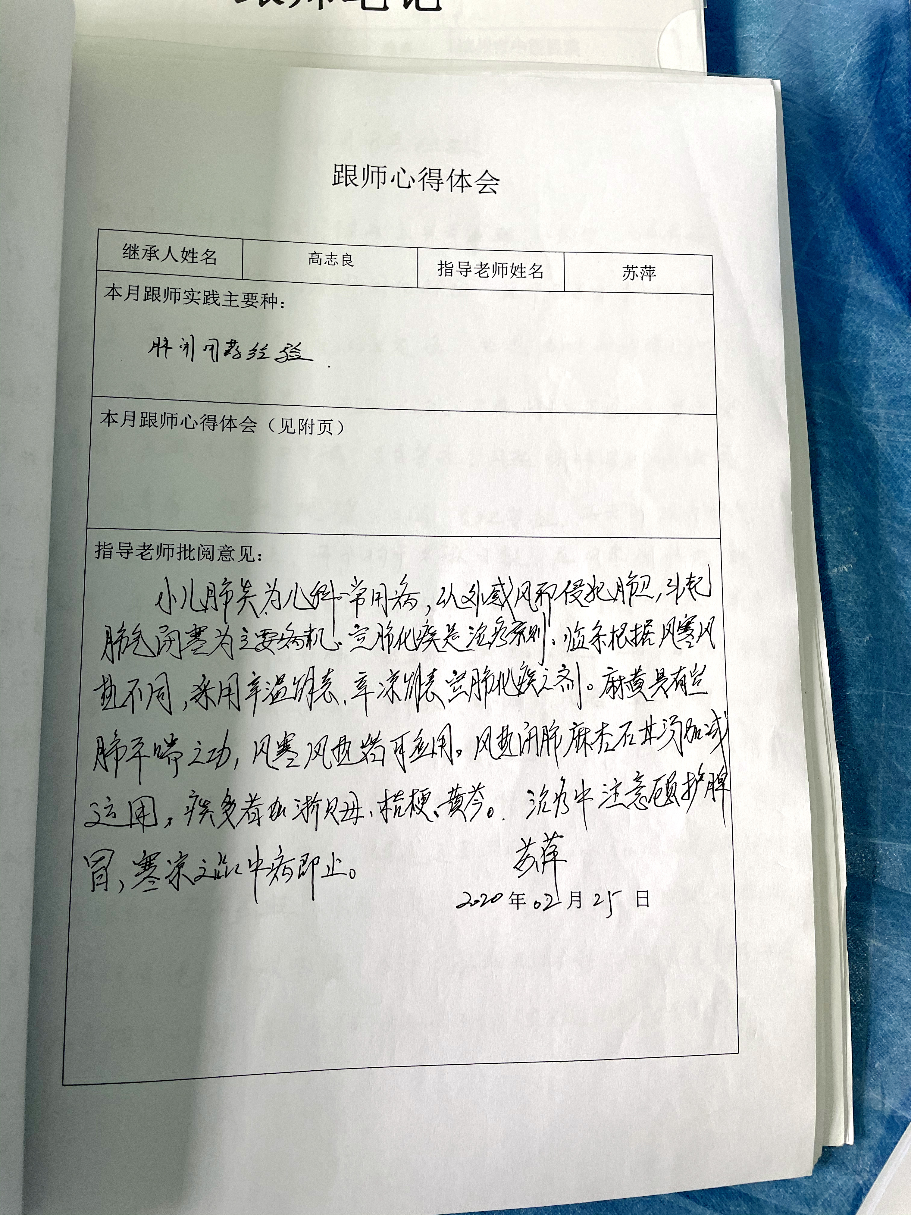 继承人典型病例、跟师笔记、跟师心得