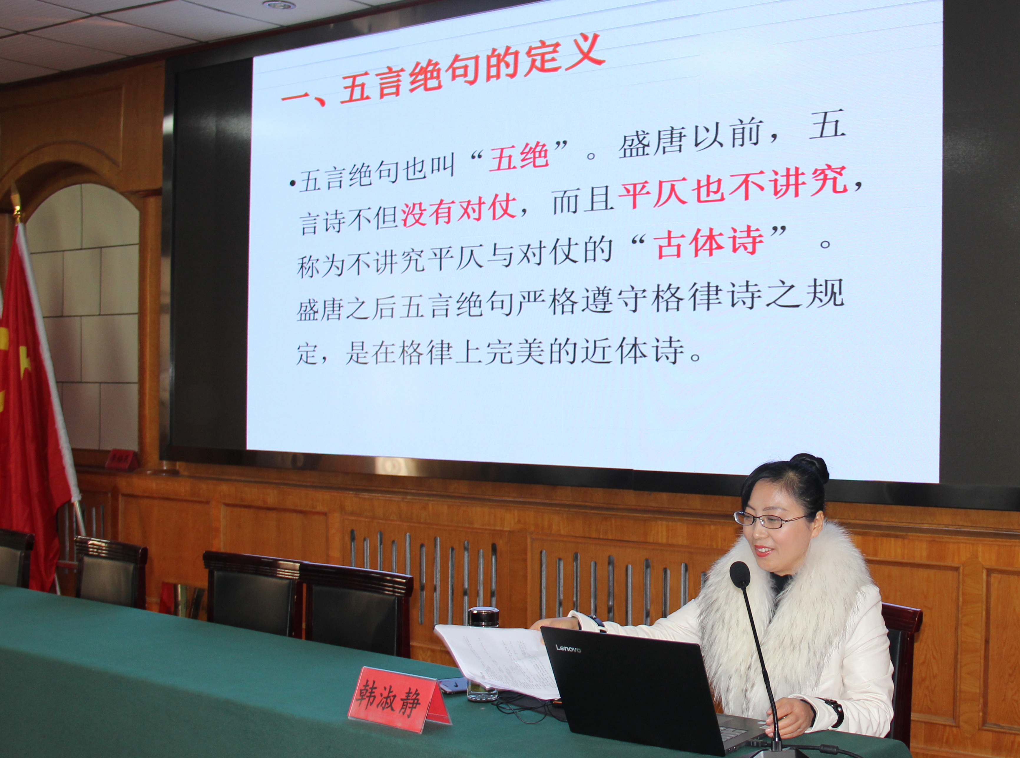 开幕式结束后,山东省诗词学会理事、市诗词学会副秘书长韩淑静老师进行了精彩授课,为广大诗友点拨迷津,对培育诗词新人,提高写作水平奠定了良好基础。