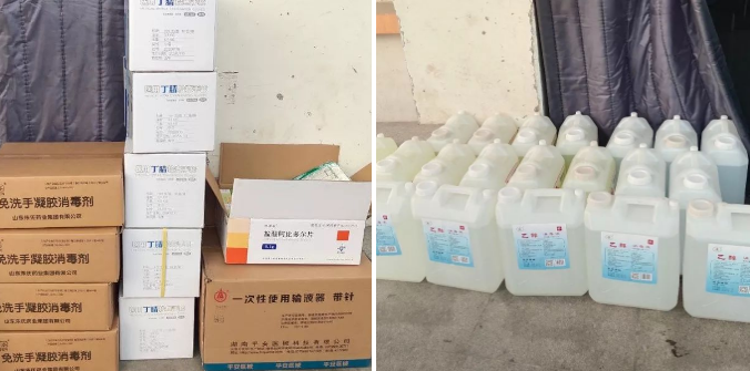国药控股滨州有限公司积极联系储备疫情防控物资,向我院捐赠防护服、医用手套、84消毒液、免洗手凝胶消毒剂等医用物资;