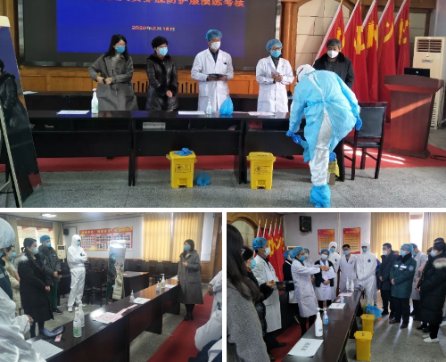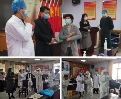 2月14日,为切实提高预备队人员穿脱防护服的熟练程度,严防感染漏洞,由医务科、护理部牵头,对18位队员开始为期三天的“防护服穿脱突击强化演练”。医院党总支书记张永生、院长高金昌、副院长李福民、副院长杨艳红等领导多次亲临现场部署指导,为队员加油鼓劲,并勉励大家狠抓细节、迎难而上,严格把好职业暴露“第一关”。