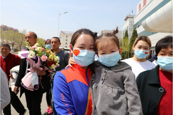 4月5日,滨州市第一、二、五批支援湖北医疗队49名医务工作者,结束14天的隔离,平安返滨,滨州市中医医院急诊科护士长李鲁教、ICU护师韩盈盈也在其中。