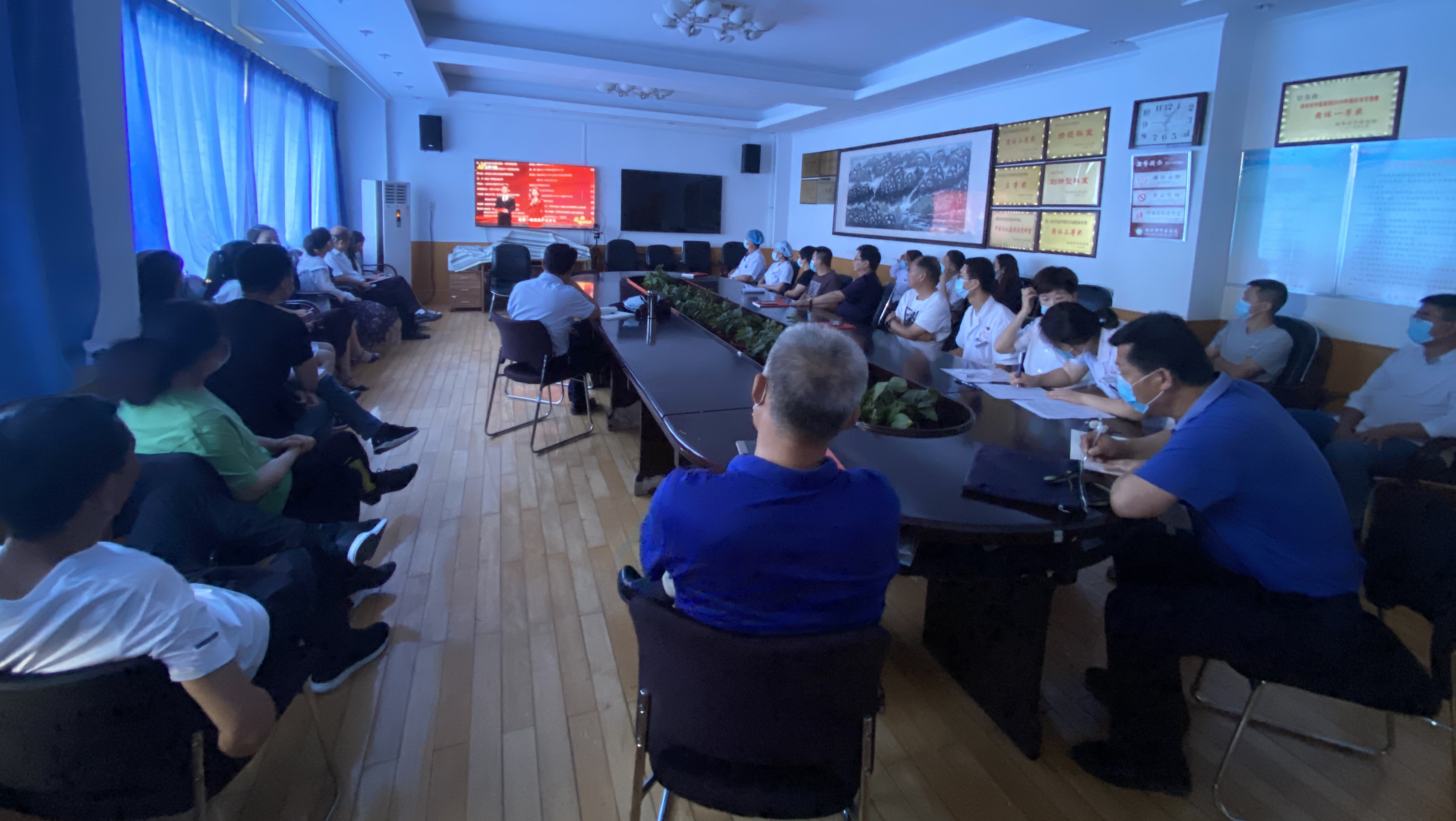 2020年7月1日上午9:00,滨州市中医医院党总支成员和医疗党支部、行政后勤党支部、老干部党支部的党员在干部保健楼四楼会议室集中收看了《灯塔大课堂》。
