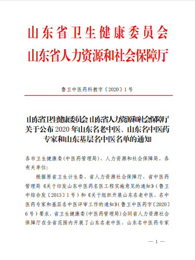 根据原省卫生计生委、省人力资源社会保障厅、省中医药管理局《关于印发山东中医药名医工程实施意见的通知》(鲁卫中综合发〔2013〕1号)和《关于组织开展山东名老中医、名中医药专家和基层名中医评审工作的通知》(鲁卫中医药字〔2020〕6号)要求,经个人申请、单位推荐、省名中医药专家50岁以下申报人员笔试、专家评审、主动公示等程序,最终评选出2020年山东名中医药专家80名。其中,我院大内科主任贾在金、椎间盘突出专科主任刘维克获评“山东名中医药专家”称号!