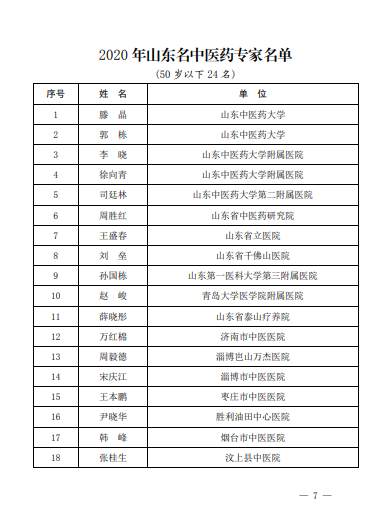 滨州市中医医院两专家入选2020年山东名中医药专家名单