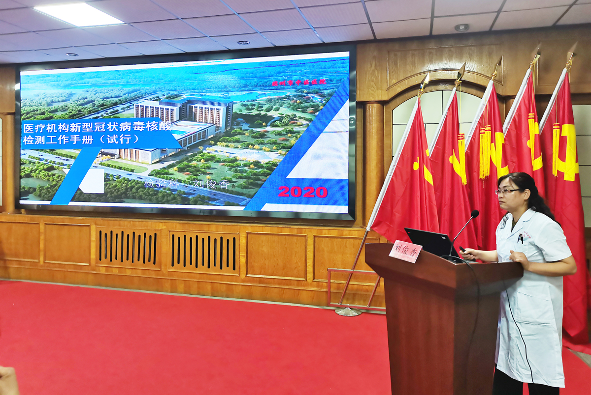 检验科刘俊香主任根据《医疗机构新型冠状病毒核酸检测工作手册》指出对技术人员、标本采集、标本管理、实验室管理、实验室质量控制与管理、核酸检测结果反馈、核酸检测安全管理、核酸检测信息化管理等方面的基本要求。