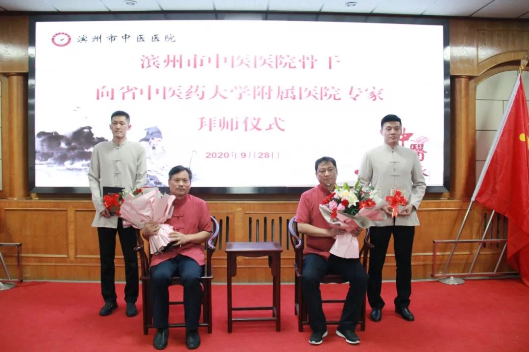 为更好地传承发扬中医名医名家学术思想,进一步加强中医药人才队伍建设,2020年9月28日,滨州市中医医院崔智峰、刘志夫两名骨干分别向省中医药大学附属医院马传江教授、省中医药大学第二附属医院常光哲教授拜师,拜师仪式在滨州市中医医院会议室举行。滨州市卫健委党组成员、副调研员方衍勇,滨州市食品药品检验检测中心中药室主任贾善学,市中医医院领导班子及相关科室成员出席会议。