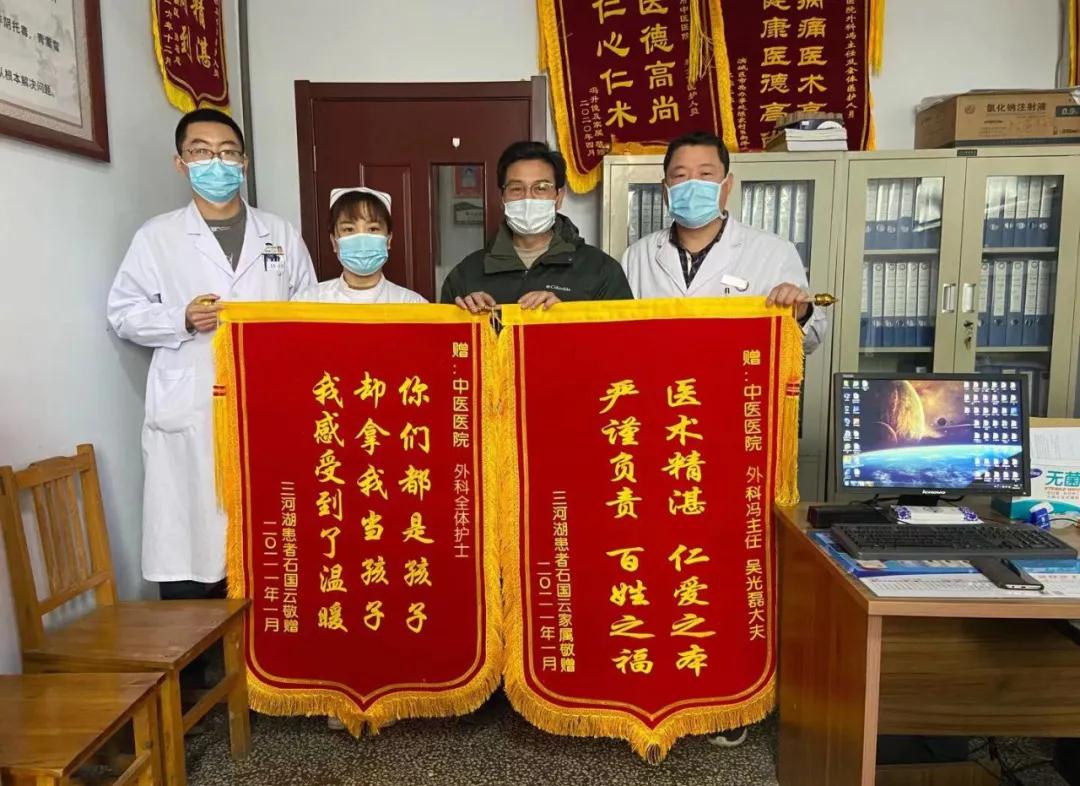 1月22日,滨州市中医医院外科收到患者家属齐先生送来的绣有“医术精湛 仁爱之本 严谨负责 百姓之福”的锦旗,在这个寒风凛冽的日子里,外科医护人员心里暖如春风拂过。
