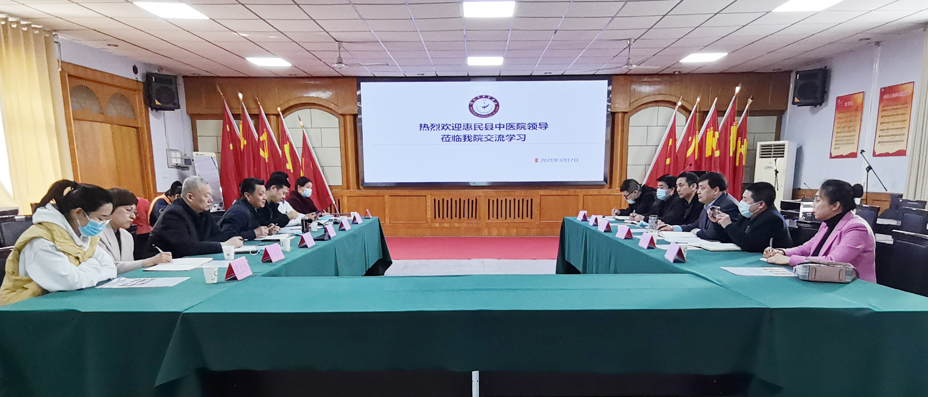 3月17日下午,惠民县中医院院长牛佃堂带领医务科、护理部、财务科等职能科室主任一行6人来院交流学习。医院党总支书记张永生、院长高金昌、副院长袁光骅及相关科室负责人参加了会议。
