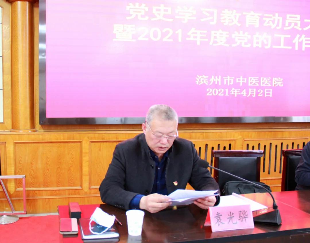 袁光骅同志做动员讲话,他要求全院要把学习贯彻习近平总书记重要讲话精神作为重大政治任务,高标准高质量开展党史学习教育,推动“理论和实践、经验和规律、历史和现实、守正和创新”融会贯通。风雨百年路,奋斗铸辉煌。在庆祝中国共产党百年华诞的重大时刻,在“两个一百年”奋斗目标历史交汇的关键节点,为从党的百年伟大奋斗征程中汲取继续前进的智慧和力量,开展党史学习教育正当其时,十分必要。开展党史学习教育,是党的政治生活中的一件大事,是贯穿我院全年工作的一项重大政治任务,需要正本清源、固本培元,加强思想引领和理论辨析,以史为鉴,立足当前,推动中医药健康事业高质量发展。