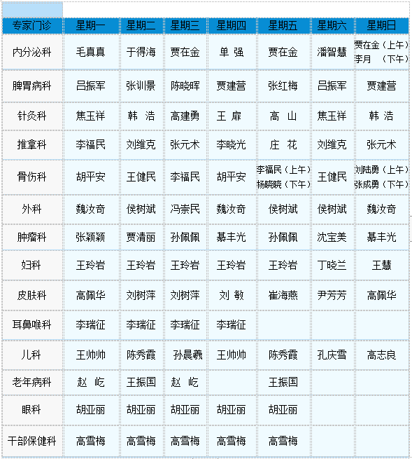 2021专家门诊值班表