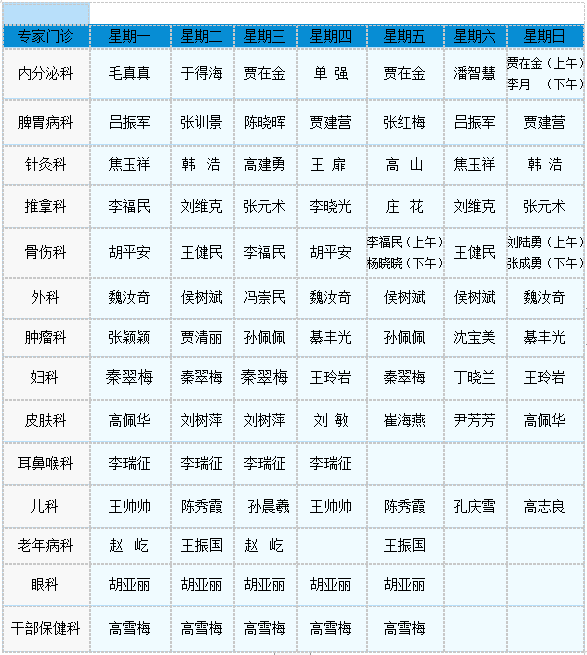 滨州市中医医院2021年6月7日-6月13日门诊值班表