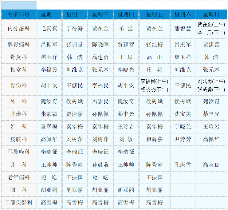 2021专家门诊值班表