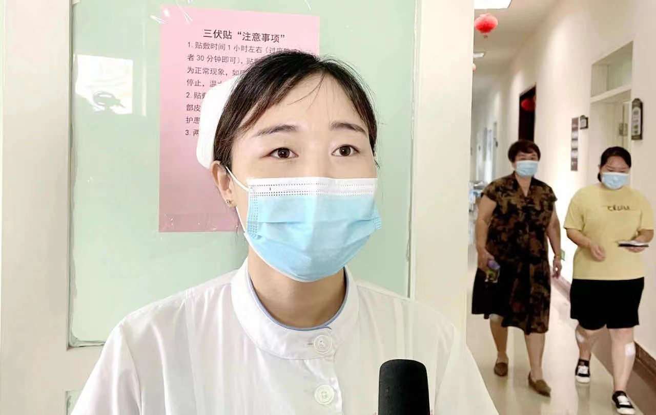 采访儿科护理负责人刘士萍:儿科今天贴敷的人数有所增加,孩子们选择三伏贴是不错的中医理疗方式。