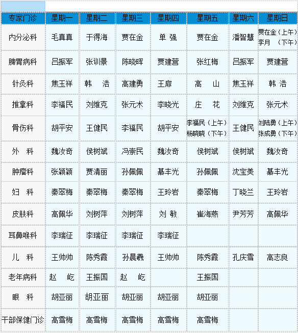 2021专家门诊值班表