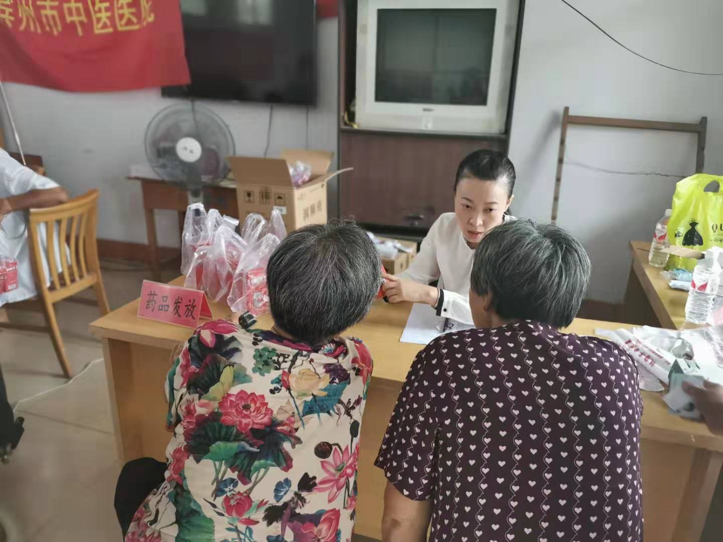 在新冠肺炎疫情防控期间杜主任为帮扶村村口值班人员进行疫情防控知识培训,协调捐赠帐篷、消毒液等物资,为村里的疫情防控工作提供了医疗保障。