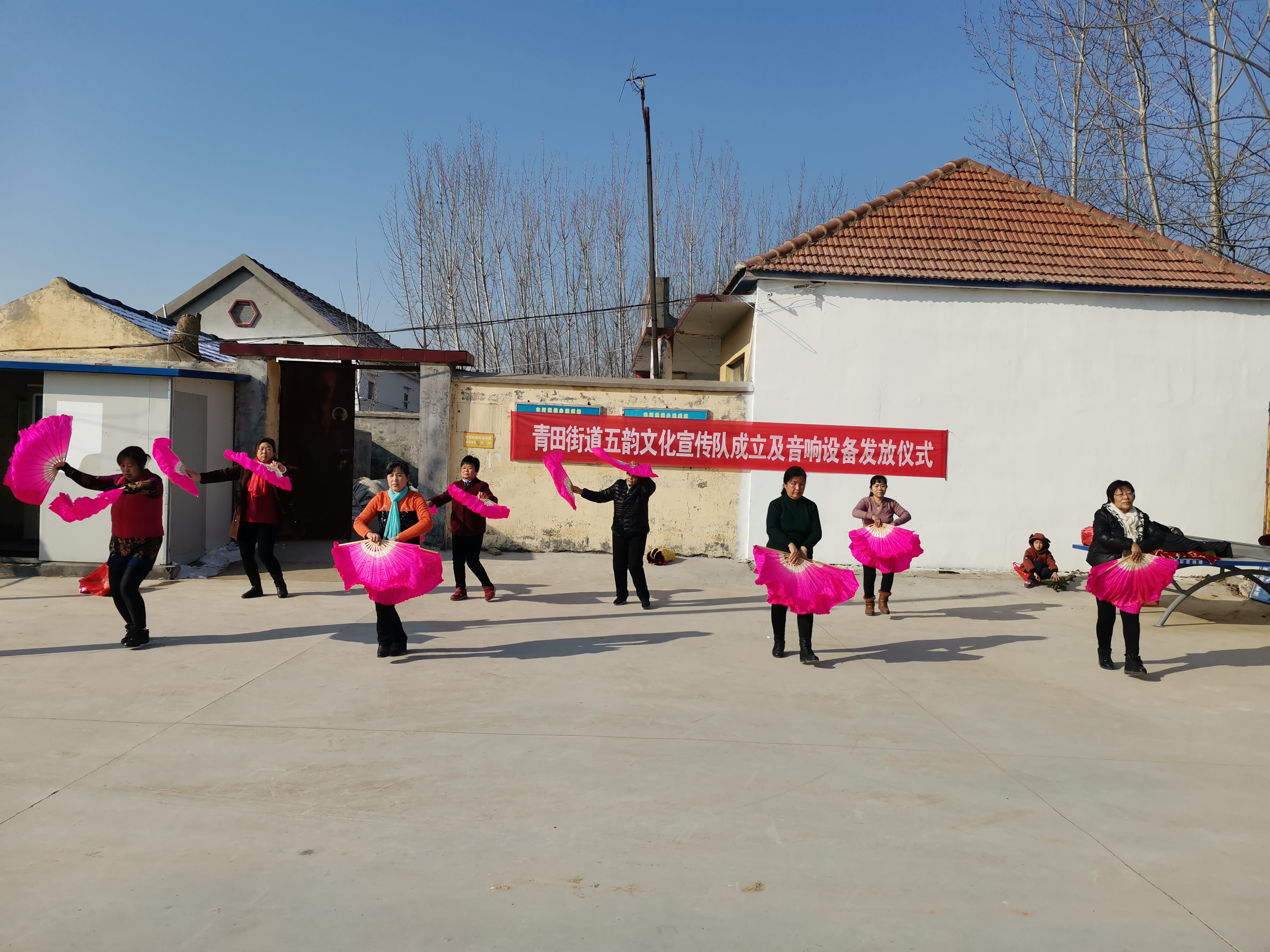 王书记说:“感谢市中医医院为村里群众开展义诊活动,免费为困难群众送医送药,并为困难群众进行拇外翻筛查;感谢医院下派杜妍主任到青田参加乡村振兴工作,杜主任到村里调研,了解到我们村一直没有健身广场,群众也没有开展文体活动,积极协调相关部门单位,为村里建设了健身广场,添置了体育健身器材,为村里成立了“舞韵”文化宣传队,并且为宣传队发放了音响设备,丰富了村里群众的文化生活”。