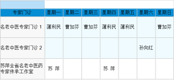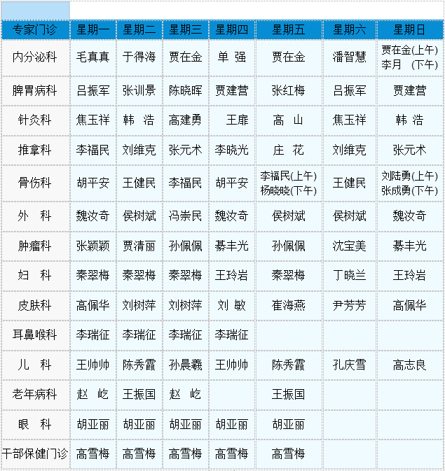 中医专家门诊值班表