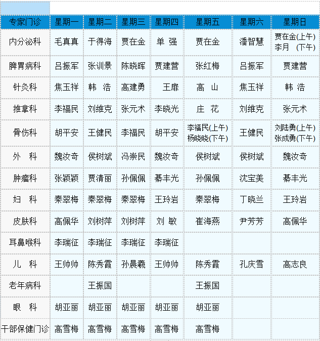 滨州市中医医院2021年8月16日-8月22日门诊值班表