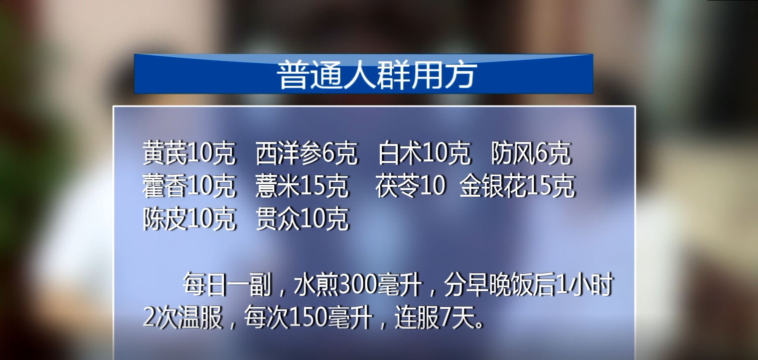 中医讲“正气存内,邪不可干”,大疫当前,无论病毒怎样变异,保持自身体质的强壮和阴阳平衡是我们抗御病邪侵袭的关键。科学合理、适当的服用中药可起到扶正固本、增强抵抗力的作用。滨州市中医医院可以为人们提供专业的预防方剂,包括成人、儿童、密接者。普通人群用方:黄芪10 西洋参6 白术10 防风6 藿香10 薏米15 茯苓10 金银花15 陈皮10 贯众10,每日一副,水煎300毫升,分早晚饭后1小时2次温服,每次150毫升,连服7天。