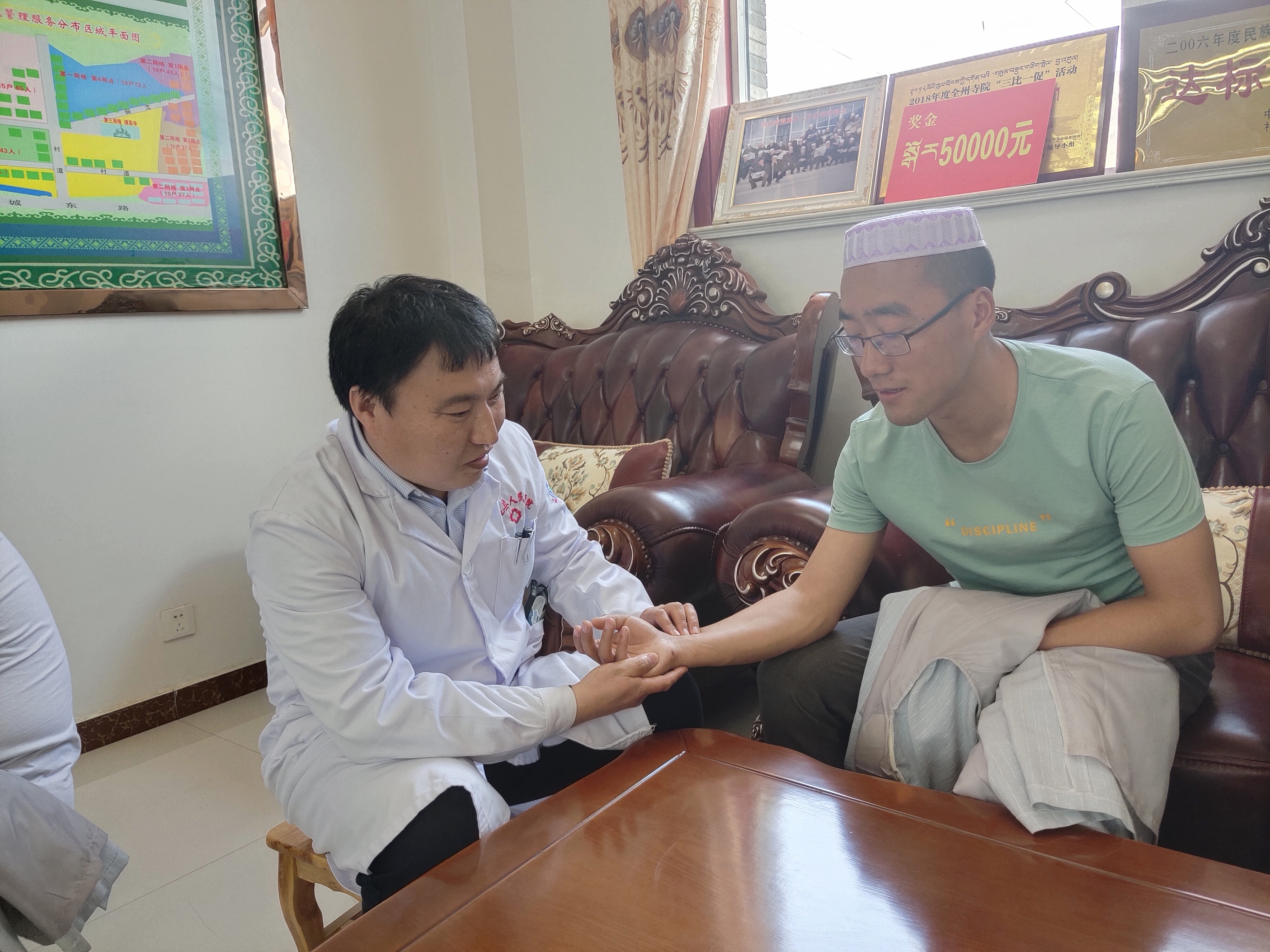 滨州市卫健委的几次重庆、青海、新疆的支医任务,都积极报名。董新利大夫于今年4月份远赴青海省祁连县人民医院支医。因为青海省地处高原,祁连县平均海拔2800米以上,刚开始因为有高原反应,缺氧导致头疼、胸闷,加上言语上交流困难,让他面临工作以来最大的挑战,不过这些他都咬着牙挺过来了。积极协助中医科开展隔物灸、平衡罐、浮针、小针刀、三伏贴等中医适宜技术,丰富了科室的治疗项目,增加了患者的就诊率,支医两个月,诊疗患者500余人次,充分发挥中医中药、针灸、推拿、拔罐、小针刀等技术,为广大颈肩腰腿痛患者解除了病痛,得到医院领导同事和患者的充分肯定及一致好评,并收到了患者感谢的锦旗!