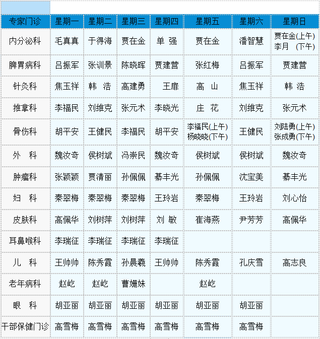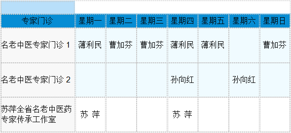 中医专家门诊值班表