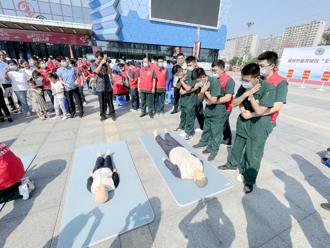 2021年9月11日是第22个“世界急救日”,上午滨州市卫生健康委联合多部门在万达广场举办滨州市暨滨城区“全民自救互救能力提升工程”启动仪式,滨州市中医医院由党委委员、副院长李福民带队,急诊科张玉昌主任等10余名急救人员参加。