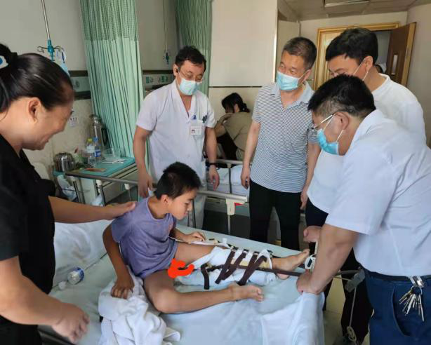 在创伤整复科,侯金永主任详细介绍了骨折手法整复及闭合穿针治疗锁骨骨折、肱骨外科颈骨折、桡骨远端骨折等7种优势病种的情况。运用闭合穿针技术避免了开放手术的创伤大、恢复慢及术后并发症多等弊端,具有患者易接受且创伤小、恢复快、并发症少、费用低等优点,充分发扬了中医整骨的优势。在侯主任带领下查看了通过闭合穿针治疗的锁骨骨折及胫腓骨骨折的患者,护士长侯冬梅与创伤整复科护士长关于创伤患者的护理及中医护理项目等问题进行了深入的交流。