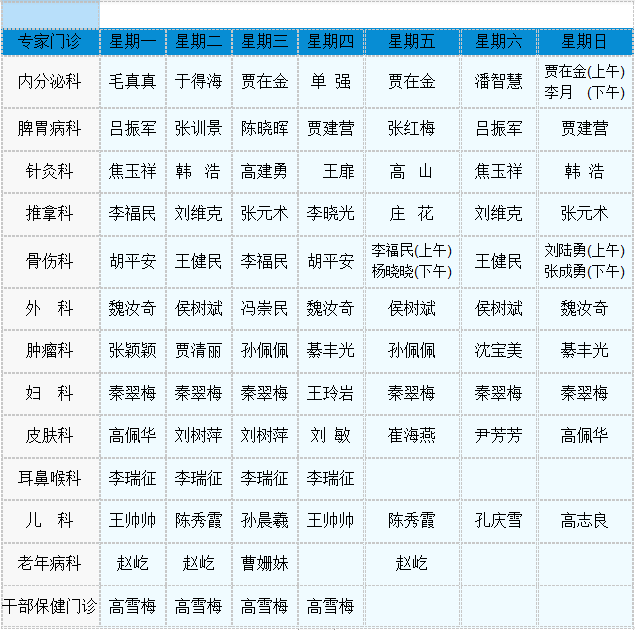 中医专家门诊值班表
