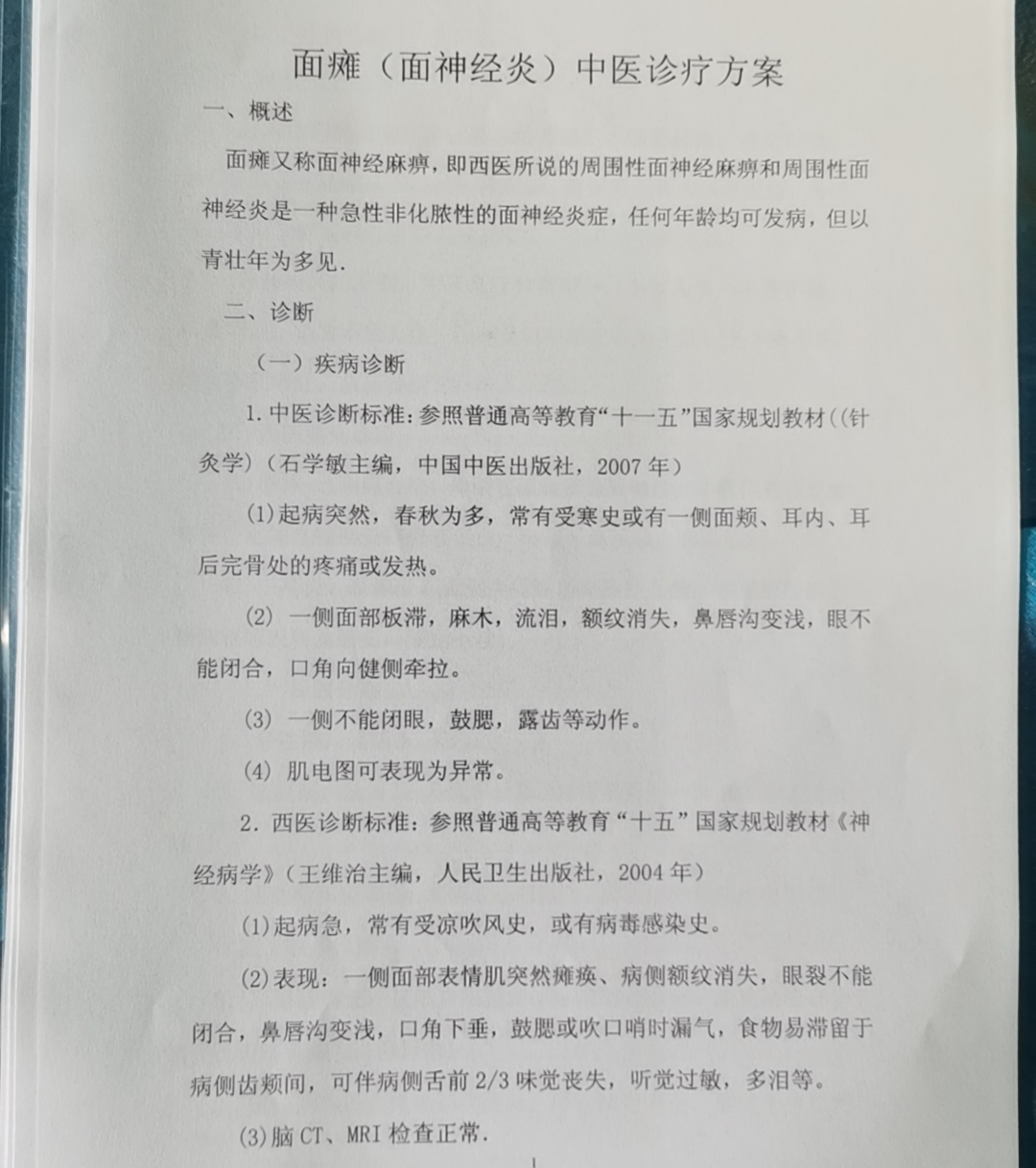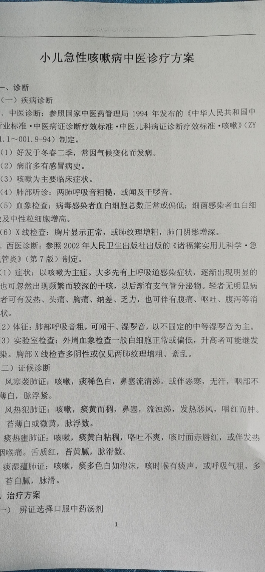 中医诊疗方案