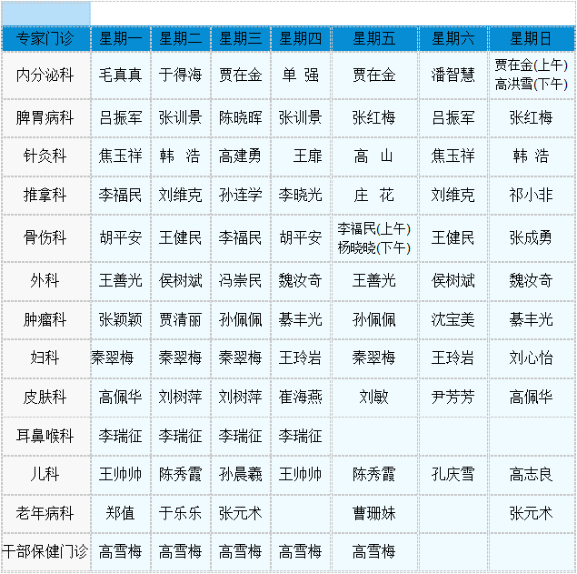 滨州市中医医院2021年10月18日-10月24日门诊值班表