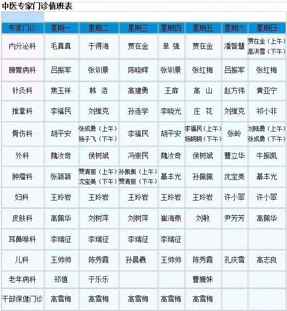 滨州市中医医院2021年10月25日-10月31日门诊值班表